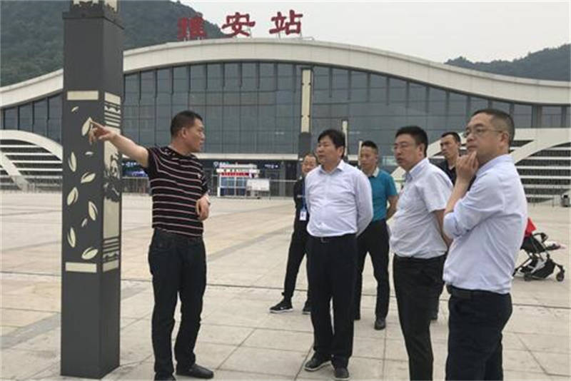 在雅安火車站站前廣場,朱濤一行詳細了解了行李滑道建設項目、地下停車場、安全提示標識等方面的情況,并聽取了簡智勇就相關事宜的匯報。