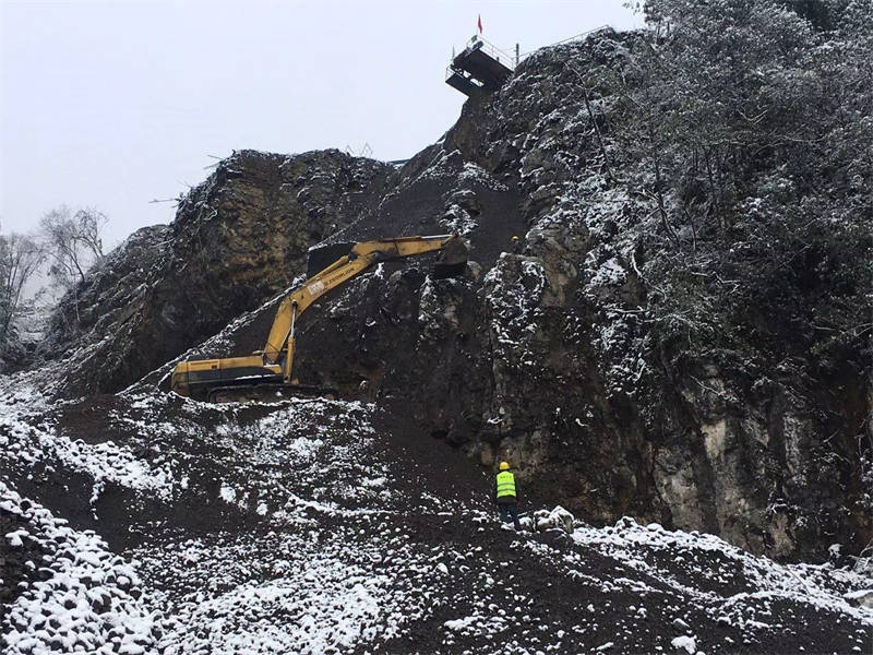 目前,廠區(qū)共8輛車在運行施工,主要用施工材料運輸,啟動3臺挖機進行礦山防護網(wǎng)安裝,初步完成安裝礦山防護網(wǎng)的前期準備工作。2月15日,舉行復工儀式,天全縣相關(guān)部門對項目進行復工資料驗收檢查,已具備開工條件。丹石公司員工正迎著風雪在大山上加緊施工,確保魚泉獅子山礦山開采項目能夠盡快完工。