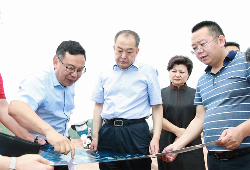 在雅安無(wú)水港鳳鳴物流園項(xiàng)目場(chǎng)平施工現(xiàn)場(chǎng),蘭開馳聽取了項(xiàng)目業(yè)主交建集團(tuán)黨委書記、董事長(zhǎng)漆家華的工作匯報(bào),詳細(xì)了解無(wú)水港物流項(xiàng)目規(guī)劃、建設(shè)進(jìn)展、業(yè)態(tài)布局等情況。