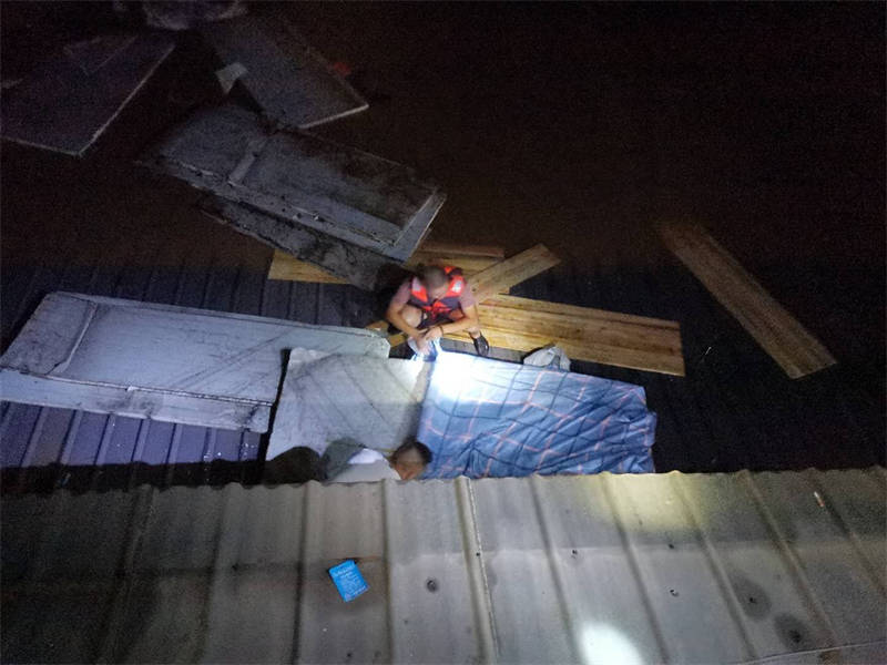 “感謝3名值班人員及時打電話通知我,否則后果不堪設想!焙喚纯f,回想起昨晚的情形,心里還是有些后怕。當時,他接到值班人員電話后,發(fā)現(xiàn)門衛(wèi)室外的洪水已經(jīng)逼近脖子,無法順利撤離,洪水漲勢又快,不一會兒,他只得爬上門衛(wèi)室頂端才能避免被水淹沒。后來,洪水沖來了一棵樹,簡敬奎借助這棵樹慢慢轉(zhuǎn)移到了附近一棵較高大的樹上繼續(xù)躲避,直至黃志和方華軍前來營救。