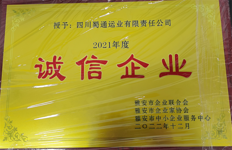 近日,蜀通公司被雅安市企業(yè)聯(lián)合會、雅安市企業(yè)家協(xié)會、雅安市中小企業(yè)服務(wù)中心授予“雅安市2021年度誠信企業(yè)”榮譽稱號。