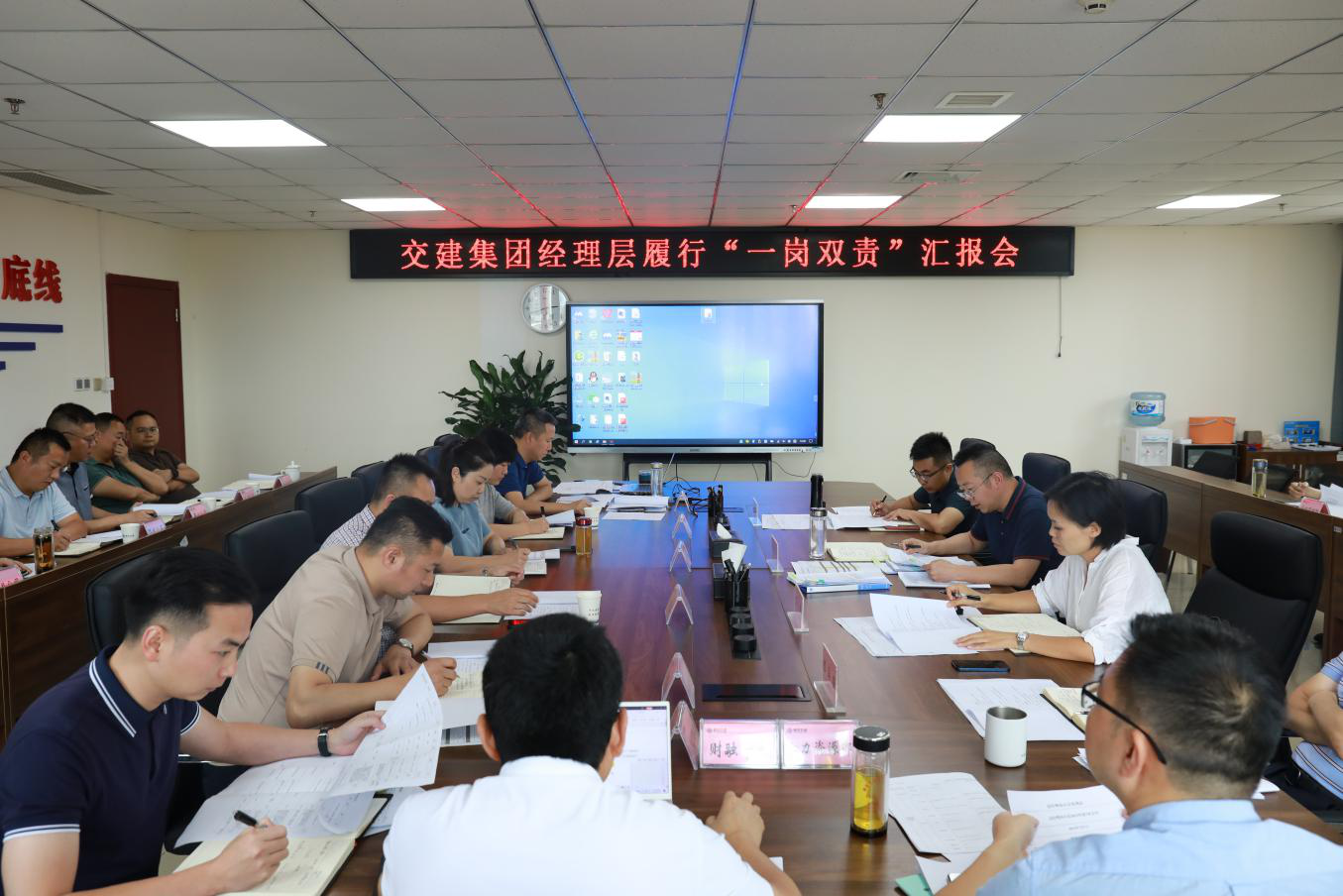 為進(jìn)一步增強(qiáng)集團(tuán)經(jīng)營班子成員自覺履行“一崗雙責(zé)”責(zé)任意識,近日,交建集團(tuán)召開經(jīng)營班子成員履行“一崗雙責(zé)”情況專題匯報會,傳達(dá)學(xué)習(xí)市委五屆三次全會精神,班子成員結(jié)合分管任務(wù)逐一匯報履行全面從嚴(yán)治黨、黨風(fēng)廉潔建設(shè)、安全環(huán)!耙粛忞p責(zé)”工作情況及下步工作打算。