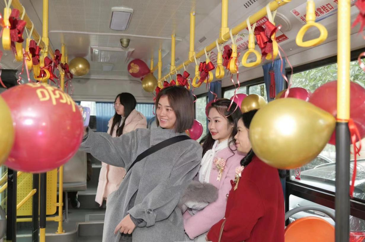 使用這輛“公交婚車”的新人表示:“與傳統(tǒng)迎親的車隊相比,公交婚車不僅低碳環(huán)保,好看熱鬧,而且租金也相對較低,性價比直接拉滿,親朋好友都聚集在寬敞的公交車?yán),一路拍照、唱歌,特別有儀式感”。