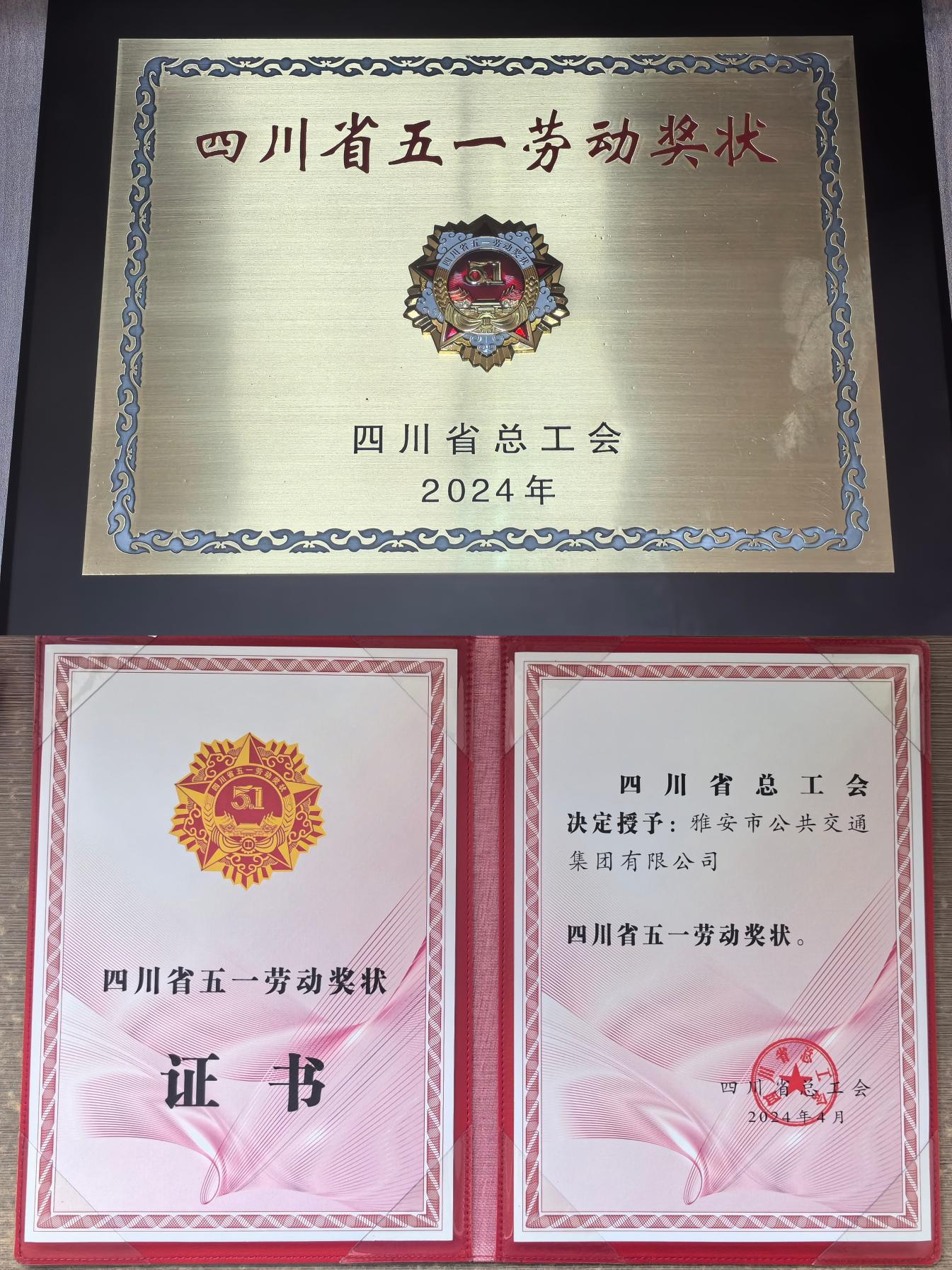 近日,2024年四川省五一勞動獎名單出爐,雅安交建集團公交公司榮獲2024年“四川省五一勞動獎狀”。