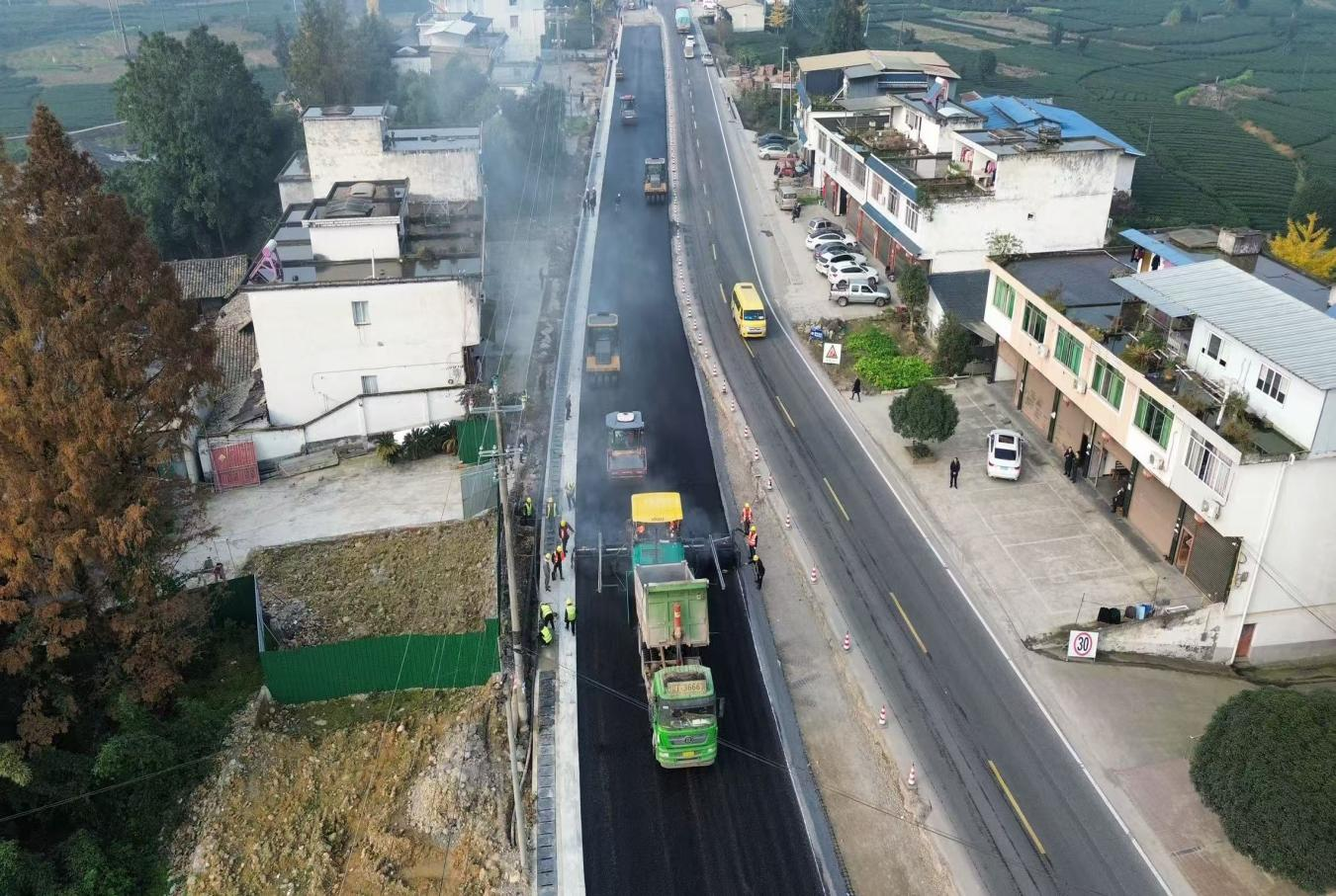 國道318線名山區(qū)黑竹(成都界)至雨城區(qū)多營段改建項(xiàng)目作為四川省重點(diǎn)項(xiàng)目,同時(shí)也是雅安“三區(qū)”同城化經(jīng)濟(jì)環(huán)線中北環(huán)線的重要組成部分,自開工以來始終保持高效推進(jìn)態(tài)勢。為實(shí)現(xiàn)2026年春節(jié)前主體工程貫通目標(biāo),近期,項(xiàng)目建設(shè)現(xiàn)場掀起“大干快上”熱潮,全體參建單位以“時(shí)不我待”的緊迫感沖刺節(jié)點(diǎn)任務(wù),各項(xiàng)工作取得突破性進(jìn)展。截至目前,項(xiàng)目累計(jì)完成投資24.95億元,完成產(chǎn)值17.6億元;路基、橋涵、隧道工程均完成90%以上,陸續(xù)進(jìn)入路面工程階段,前12公里改建段已建成通車。