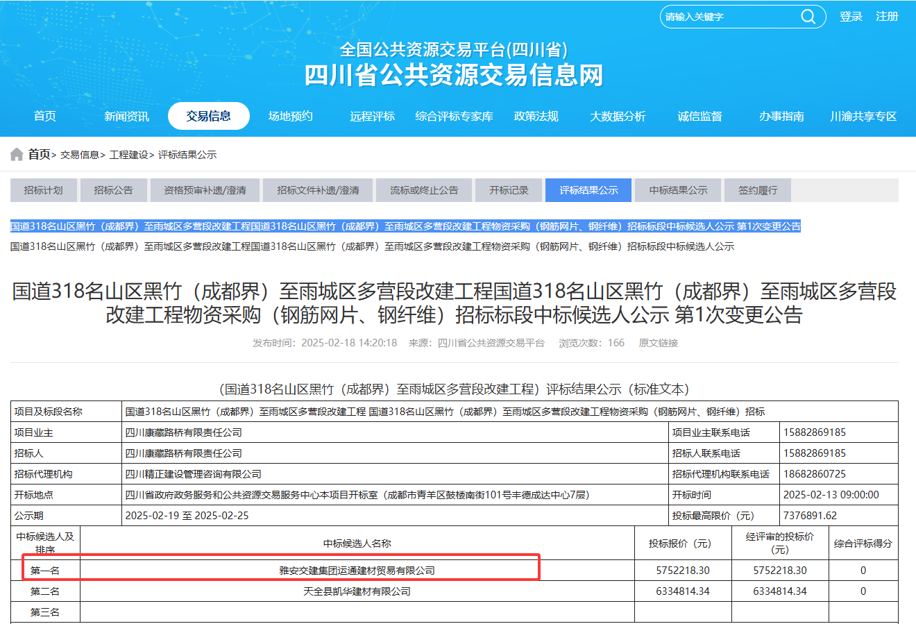 新年伊始,雅安交建集團(tuán)建材公司憑借過(guò)硬實(shí)力和平臺(tái)企業(yè)優(yōu)勢(shì),在重點(diǎn)基建項(xiàng)目招標(biāo)中連獲突破,成功中標(biāo)國(guó)道318名山區(qū)黑竹(成都界)至雨城區(qū)多營(yíng)段改建工程兩大核心物資供應(yīng),合同總額突破2100萬(wàn)元,為2025年度經(jīng)營(yíng)目標(biāo)達(dá)成奠定堅(jiān)實(shí)基礎(chǔ)。