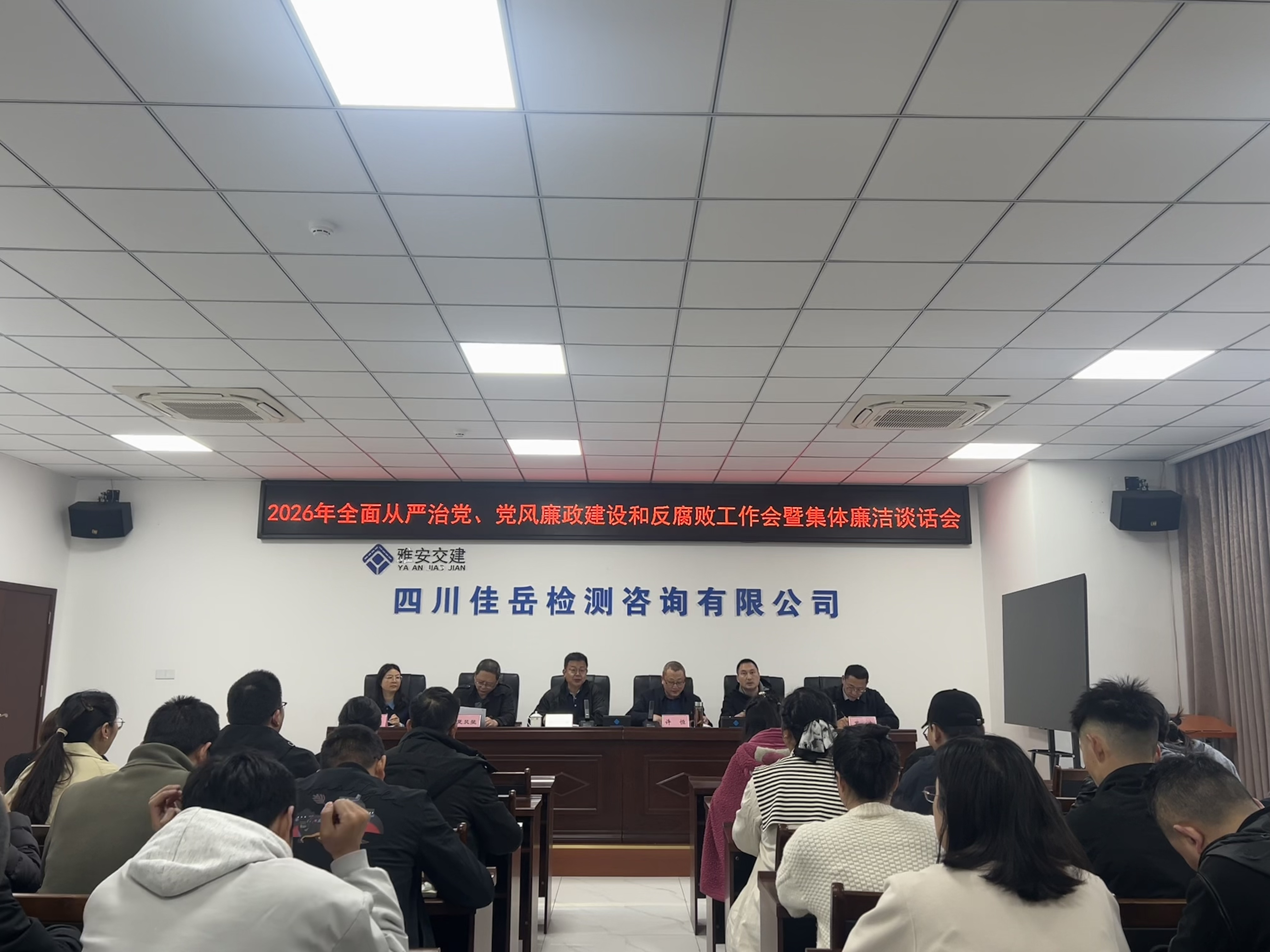 會(huì)議傳達(dá)學(xué)習(xí)了中央、省、市及雅安交建集團(tuán)2026年黨風(fēng)廉政建設(shè)和反腐敗工作會(huì)議精神,全面總結(jié)2025年工作成效,分析當(dāng)前形勢(shì),系統(tǒng)布置2026重點(diǎn)任務(wù)并開展集體廉潔談話。全體參會(huì)人員集中觀看警示教育片《以案為鑒 警鐘長(zhǎng)鳴》,通報(bào)國(guó)有企業(yè)違紀(jì)違法典型案例,以身邊事教育身邊人,用典型案例敲響廉潔警鐘,引導(dǎo)全體員工知敬畏、存戒懼、守底線。