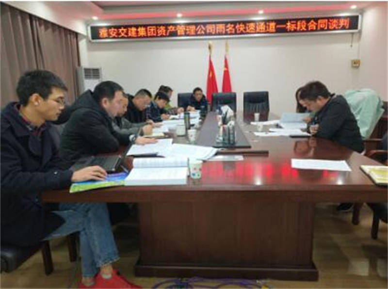 1月8日,成雅高速金雞關(guān)互通改造暨雨名快速通道合同談判工作在雅安交建集團四樓會議室進行。