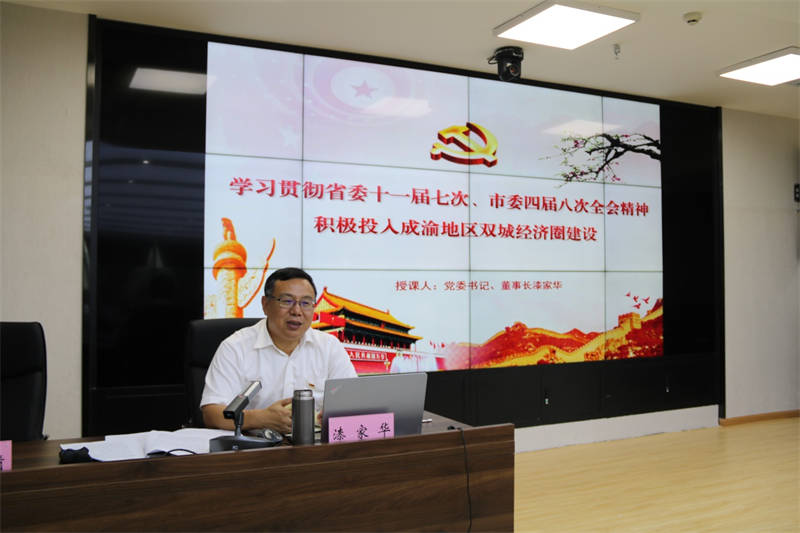 7月31日下午,雅安交建集團召開黨委中心組學習(擴大)會議,旨在全面貫徹落實省委十一屆七次全會精神及市委四屆八次全會精神,在交建集團上下掀起學習宣傳貫徹省委、市委全會精神熱潮,進一步推動省、市各項決策部署在交建集團落地落實,確保順利完成全年目標任務。集團領導班子,部門負責人,子公司經營班子共60余人參加會議。會議由集團黨委副書記張萬清主持,黨委書記漆家華講話。