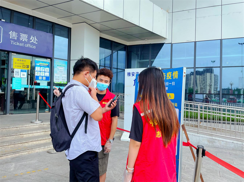 青年志愿者們嚴(yán)格遵守雅安市汽車(chē)客運(yùn)站站長(zhǎng)葛舉康為大家講解的疫情防控工作要求,積極投身志愿服務(wù),分別在雅安市火車(chē)站進(jìn)出站口、雅安市汽車(chē)客運(yùn)站進(jìn)站口、售票大廳、候車(chē)廳等點(diǎn)位駐守,勸導(dǎo)旅客戴好口罩、查驗(yàn)場(chǎng)所碼、行程碼及核酸報(bào)告,并向乘客宣傳疫情防控知識(shí),時(shí)刻提醒旅客保持安全距離,認(rèn)真維護(hù)現(xiàn)場(chǎng)秩序。