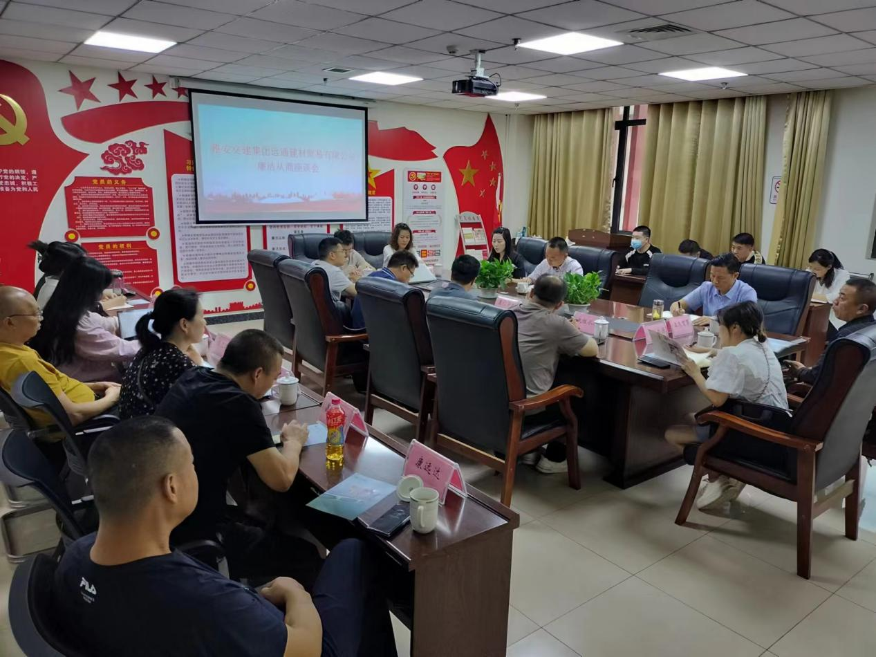 為深刻認(rèn)識廉潔文化建設(shè)的重大意義,不斷筑牢公司黨員干部職工拒腐防變的思想堤壩,為公司高質(zhì)量發(fā)展構(gòu)建風(fēng)清氣正的政治生態(tài)。6月6日下午15:30,交建集團(tuán)建材公司組織召開廉潔從商座談會,進(jìn)一步壓緊壓實(shí)雙方的廉潔責(zé)任,構(gòu)建“親不逾矩、清不遠(yuǎn)疏”的合作關(guān)系。公司黨支部副書記、總經(jīng)理李巧頔主持會議,黨支部書記、董事長李波、副總經(jīng)理程新忠、各部門負(fù)責(zé)人以及15家合作商相關(guān)負(fù)責(zé)人參加了本次會議。