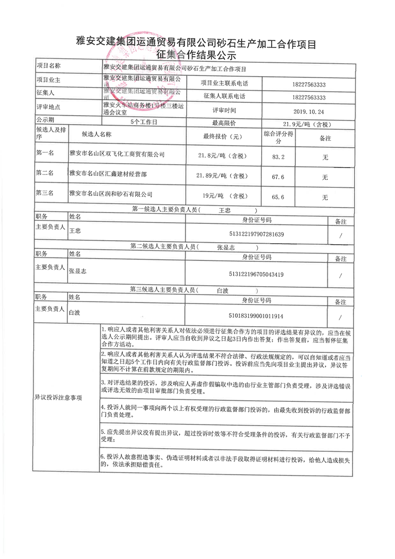 雅安交建集團(tuán)運(yùn)通貿(mào)易有限公司砂石生產(chǎn)加工合作項(xiàng)目征集合作結(jié)果公示