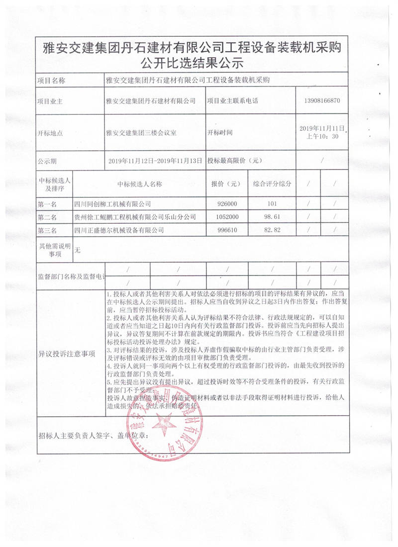 雅安交建集團(tuán)丹石建材有限公司工程設(shè)備裝載機(jī)采購(gòu)公開(kāi)比選結(jié)果公示