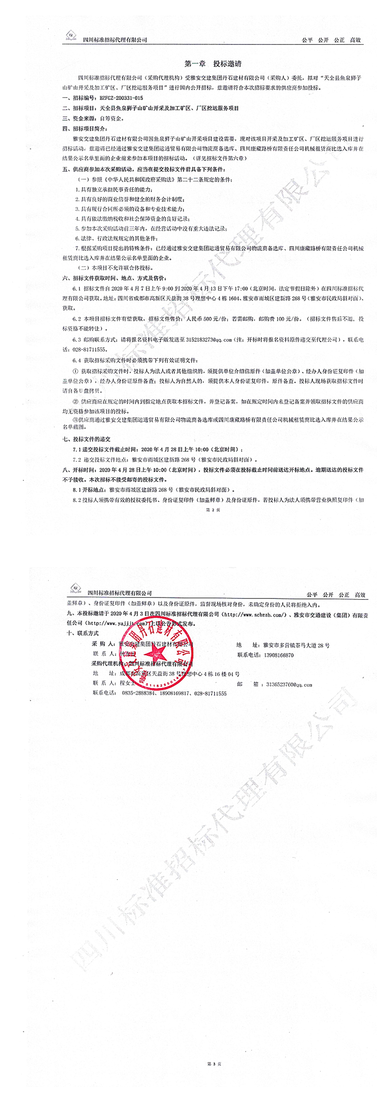 雅安交建集團(tuán)丹石建材有限公司天全縣魚泉獅子山礦山開采及加工礦區(qū)、廠區(qū)挖運(yùn)服務(wù)項(xiàng)目招標(biāo)公告