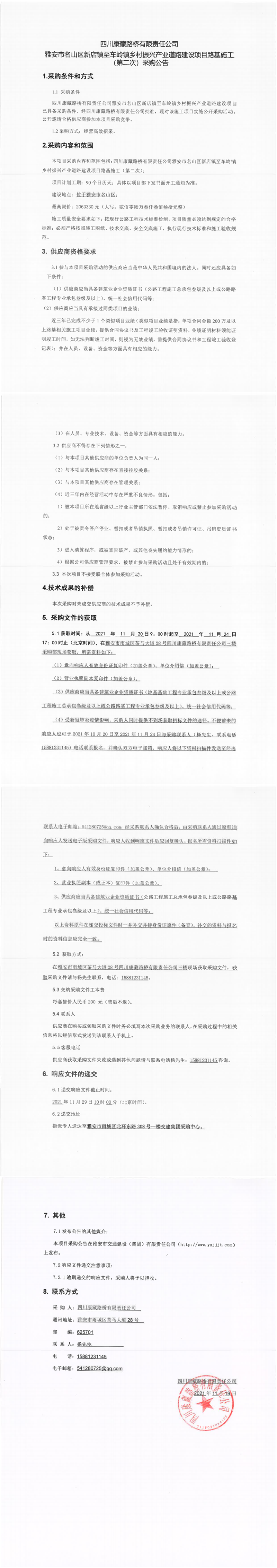 四川康藏路橋有限責(zé)任公司雅安市名山區(qū)新店鎮(zhèn)至車(chē)嶺鎮(zhèn)鄉(xiāng)村振興產(chǎn)業(yè)道路建設(shè)項(xiàng)目路基施工(第二次)采購(gòu)公告