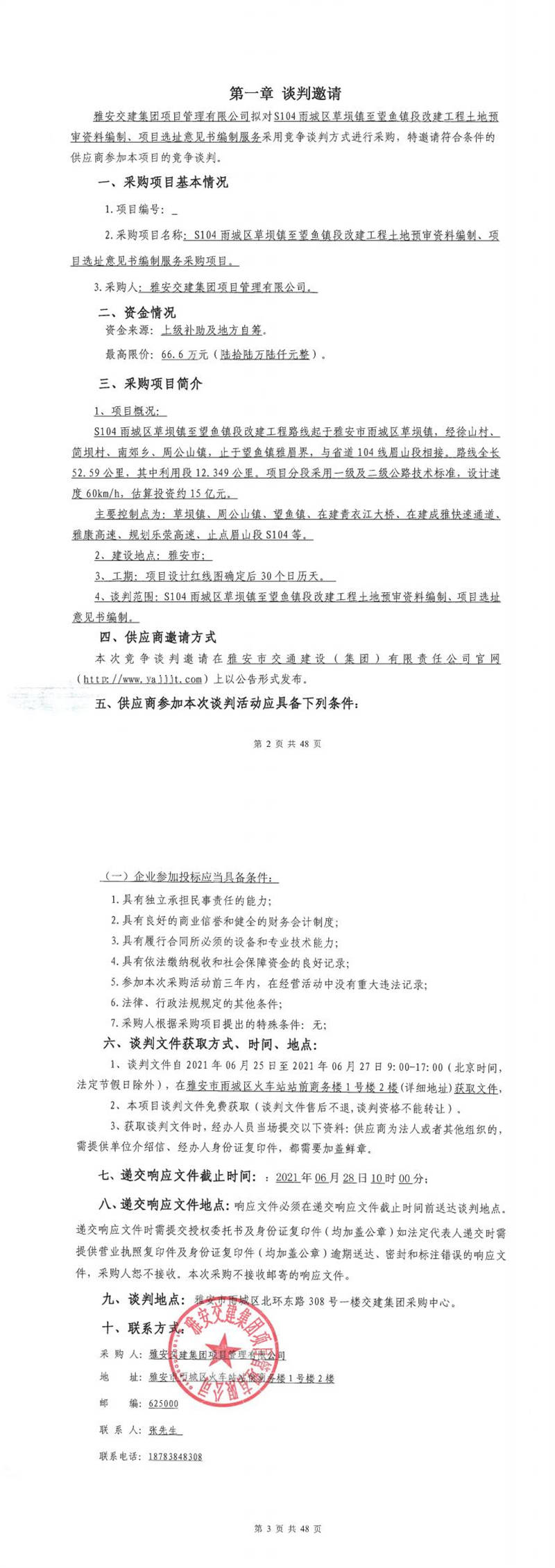 雅安交建集團(tuán)項(xiàng)目管理有限公司S104雨城區(qū)草壩鎮(zhèn)至望魚鎮(zhèn)段改建工程行洪論證與河勢(shì)穩(wěn)定評(píng)價(jià)報(bào)告編制服務(wù)采購(gòu)項(xiàng)目競(jìng)爭(zhēng)談判公告