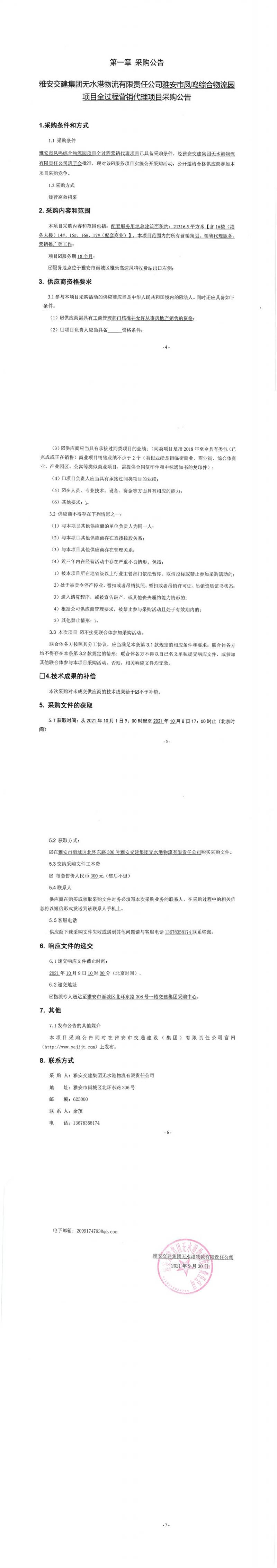 雅安交建集團(tuán)無水港物流有限責(zé)任公司雅安市鳳鳴綜合物流園項目全過程營銷代理項目采購公告