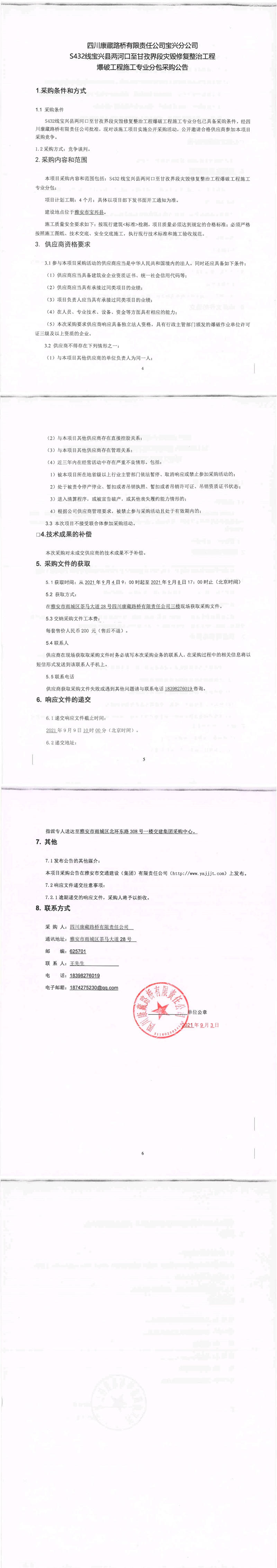 四川康藏路橋有限責(zé)任公司寶興分公司s432線(xiàn)寶興縣兩河口至甘孜界段災(zāi)毀修復(fù)整治工程爆破工程施工專(zhuān)業(yè)分包采購(gòu)公告
