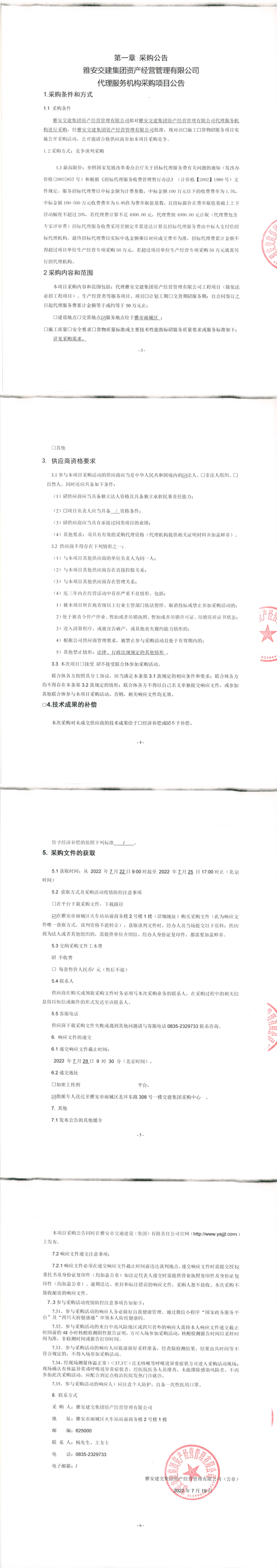 雅安交建集團(tuán)資產(chǎn)經(jīng)營(yíng)管理有限公司代理服務(wù)機(jī)構(gòu)采購項(xiàng)目公告