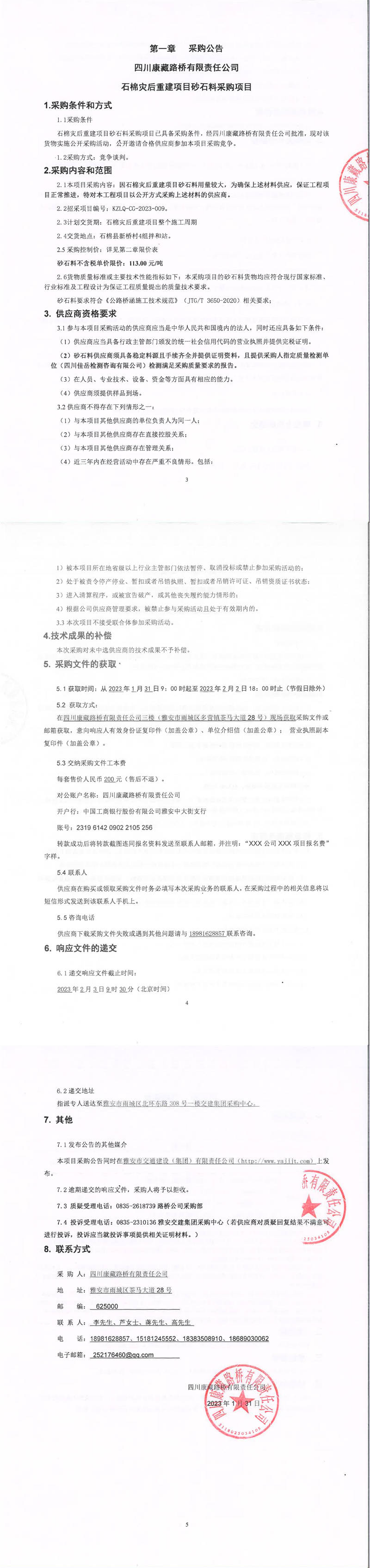 四川康藏路橋有限責(zé)任公司石棉災(zāi)后重建項(xiàng)目砂石料采購(gòu)項(xiàng)目采購(gòu)公告
