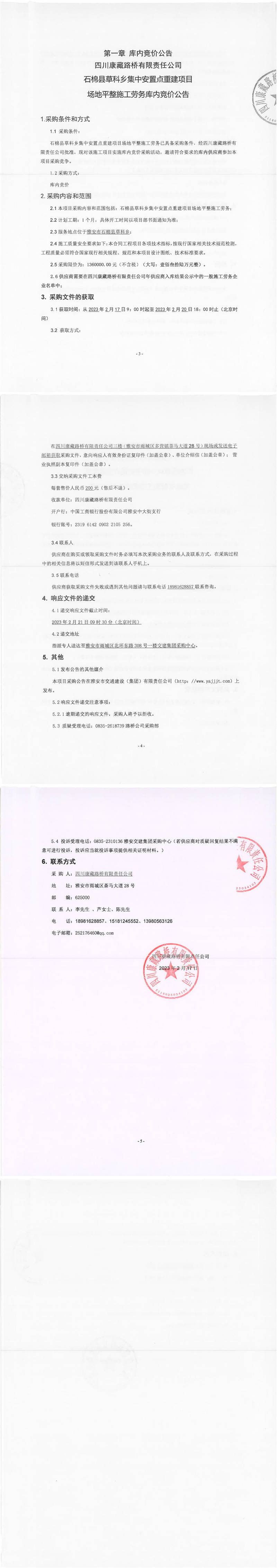 四川康藏路橋有限責任公司石棉草科鄉(xiāng)集中安置點重建項目場地平整施工勞務庫內(nèi)競價公告