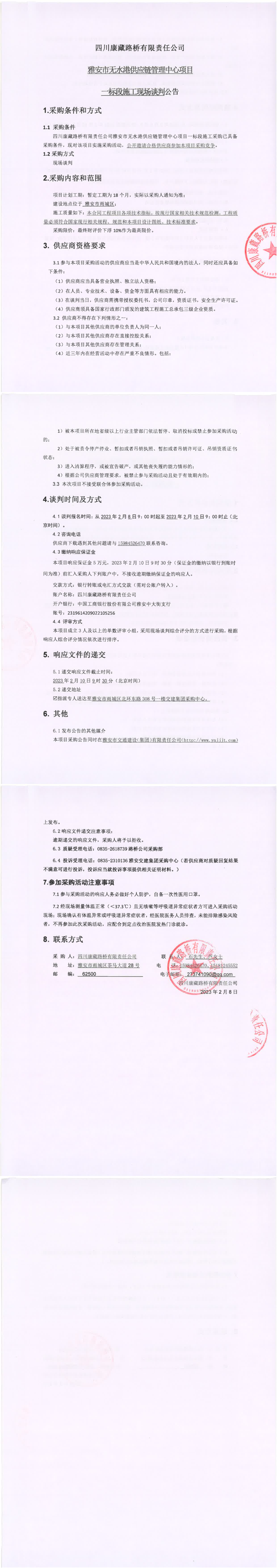 四川康藏路橋有限責(zé)任公司雅安市無(wú)水港供應(yīng)鏈管理中心項(xiàng)目一標(biāo)段施工現(xiàn)場(chǎng)談判公告