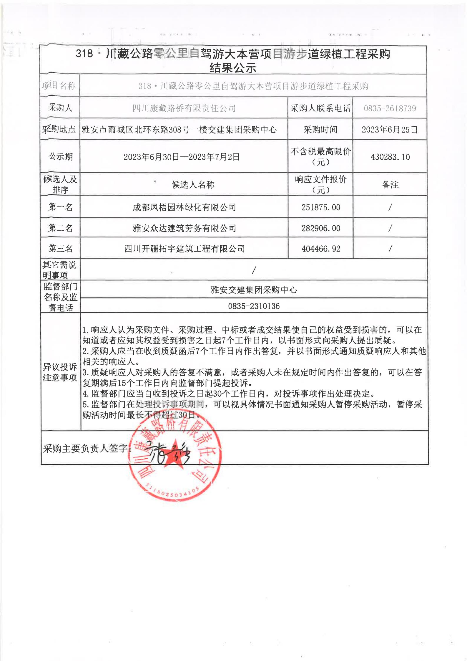 四川康藏路橋有限責(zé)任公司318·川藏公路零公里自駕游大本營(yíng)項(xiàng)目游步道綠植工程采購(gòu)結(jié)果公示