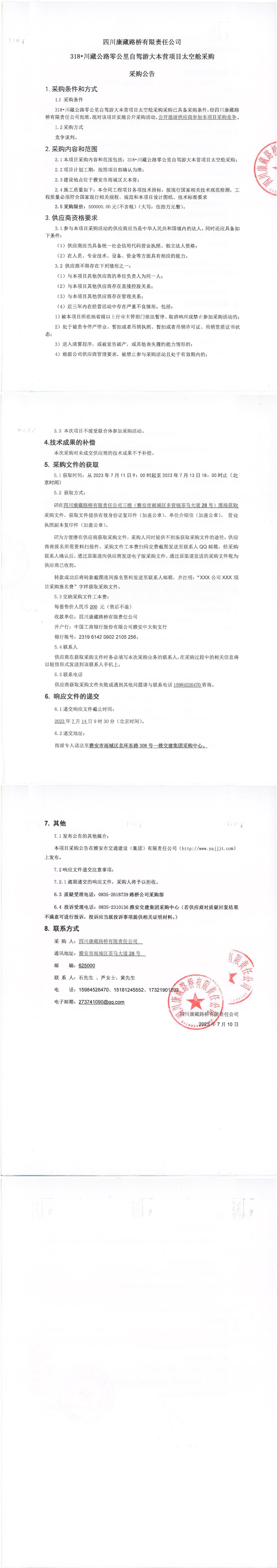 四川康藏路橋有限責(zé)任公司318·川藏公路零公里自駕游大本營(yíng)項(xiàng)目太空艙采購公告