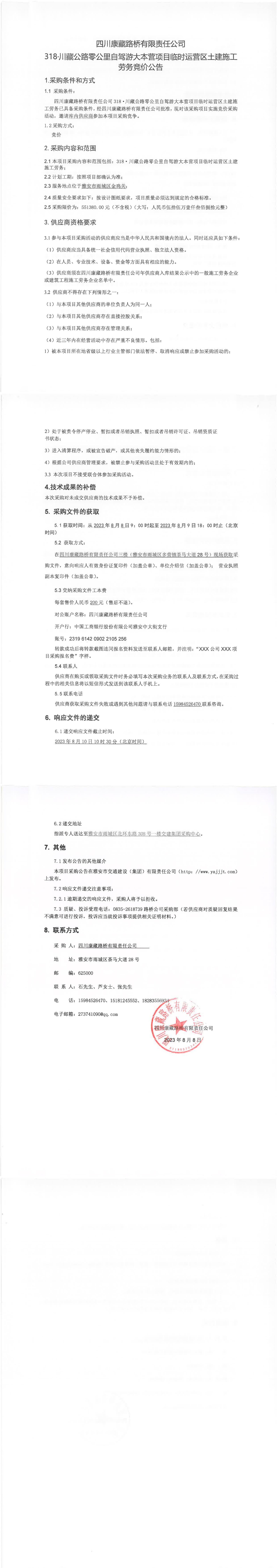 四川康藏路橋有限責任公司318·川藏公路零公里自駕游大本營項目臨時運營區(qū)土建施工勞務競價公告