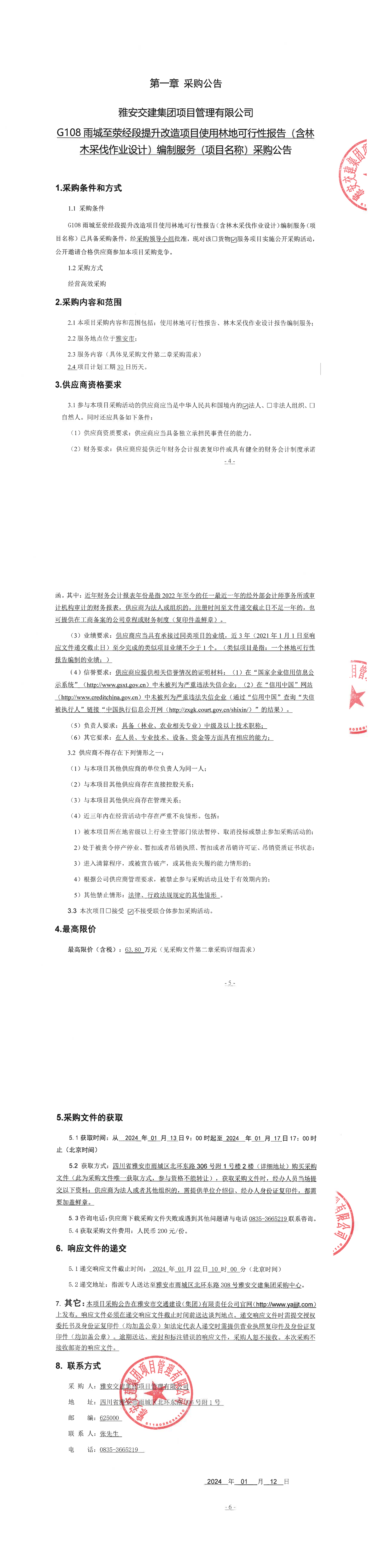 雅安交建集團(tuán)項(xiàng)目管理有限公司G108雨城至滎經(jīng)段提升改造項(xiàng)目使用林地可行性報(bào)告(含林木采伐作業(yè)設(shè)計(jì))編制服務(wù)(項(xiàng)目名稱)采購(gòu)公告