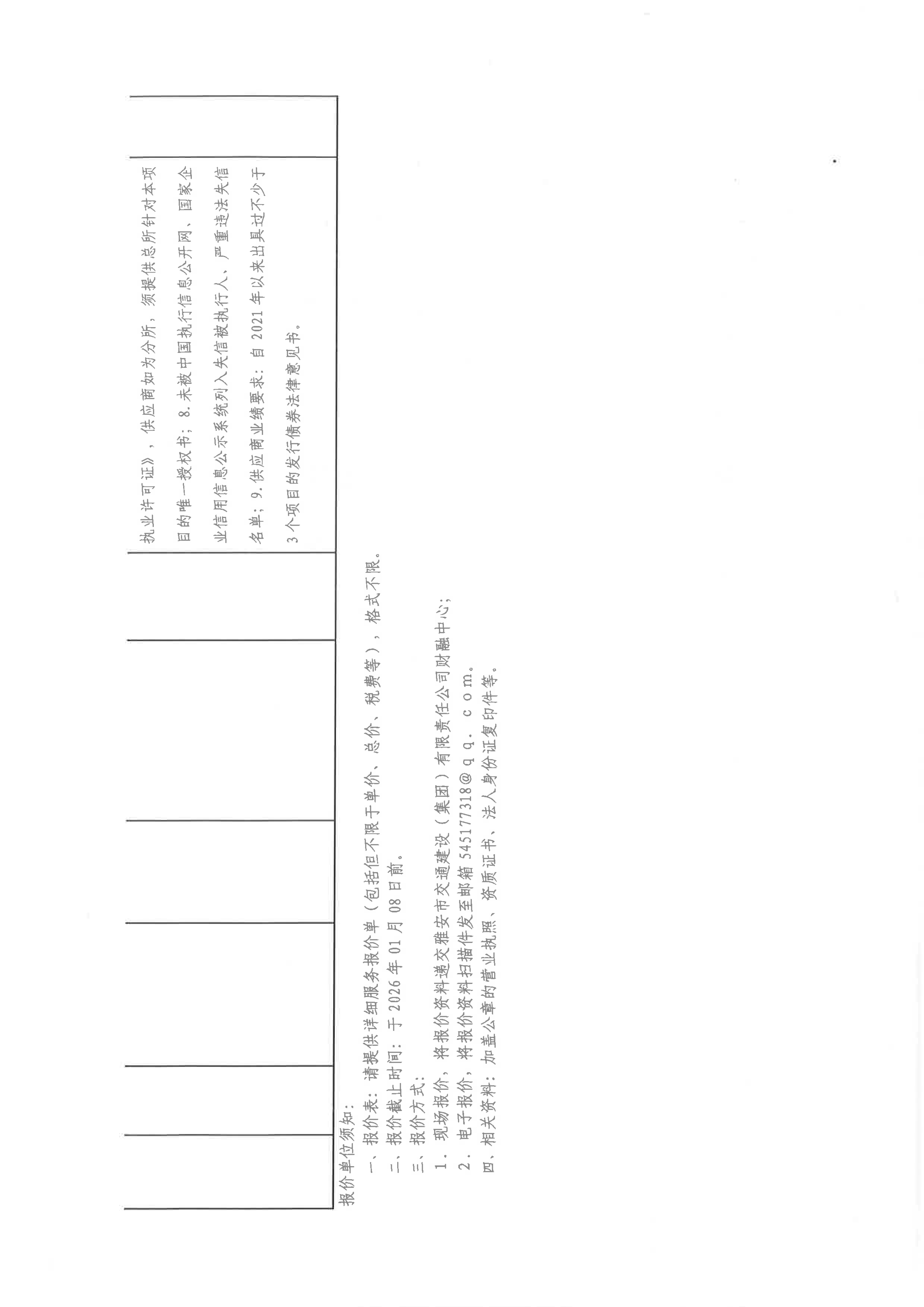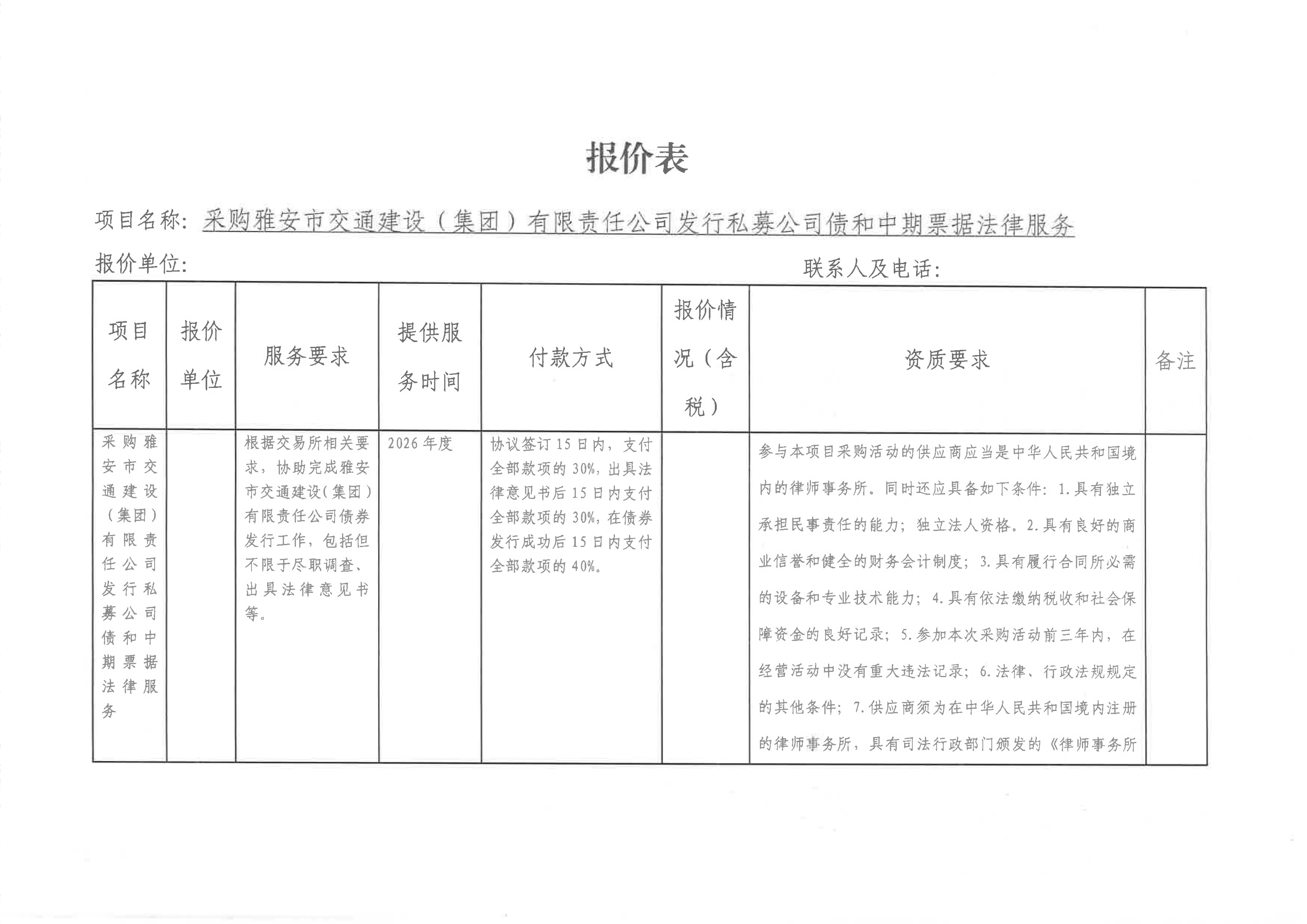關于雅安市交通建設(集團)有限責任公司發(fā)行私募公司債和中期票據(jù)所需法律服務采購限價的詢價函
