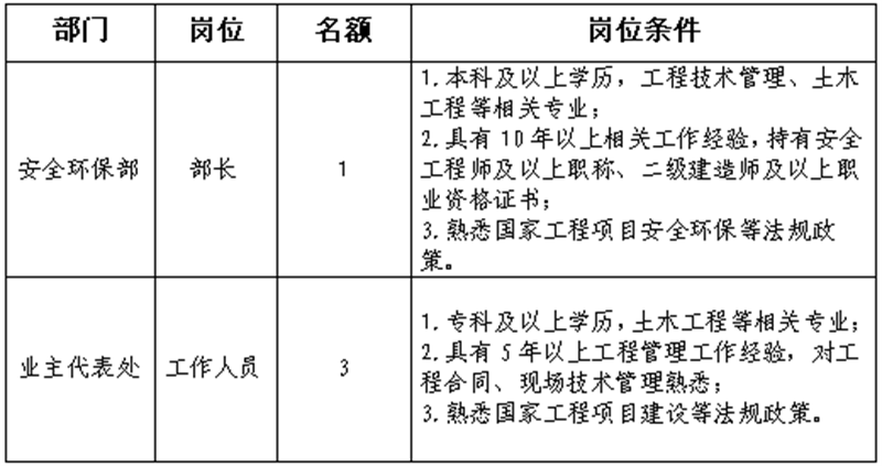 根據(jù)發(fā)展需要,決定面向社會公開招聘雅安市交通建設(shè)(集團(tuán))有限責(zé)任公司(以下簡稱“雅安交建集團(tuán)”)所屬子公司相關(guān)人員4名,現(xiàn)將有關(guān)事項公告如下: