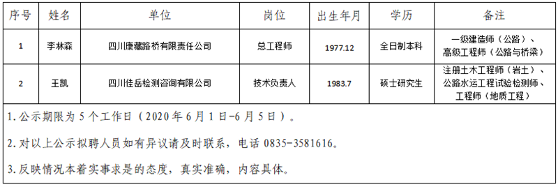 雅安交建集團(tuán)擬聘用人員公示(路橋、佳岳公司人才引進(jìn))