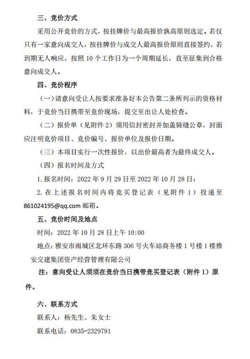 雅安交建無水港公司關于閑置資產(chǎn)公開招租的公告