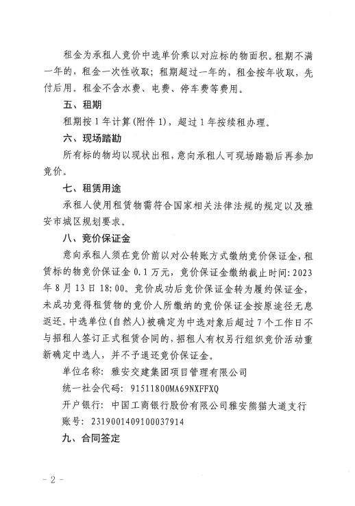 雅安交建集團(tuán)項(xiàng)目管理有限公司關(guān)于雅安多營青衣江大橋左岸橋下可利用地塊掛網(wǎng)招租的公告附件