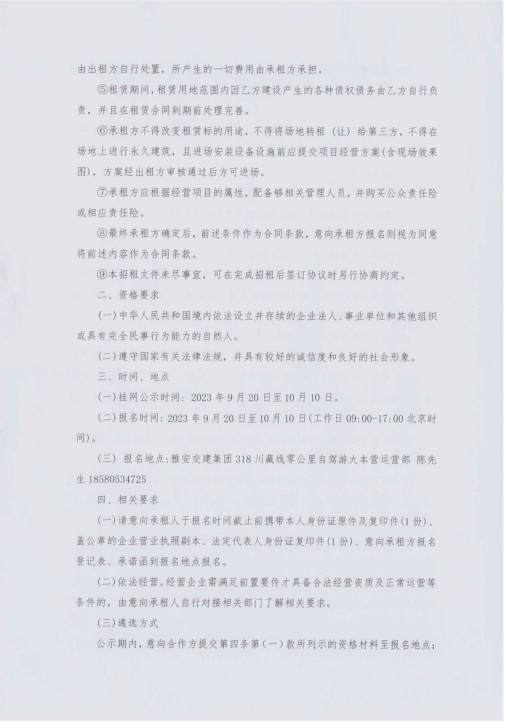 四川康藏路橋有限責(zé)任公司318·川藏線零公里自駕游大本營臨時(shí)用地臨時(shí)招租征集公告