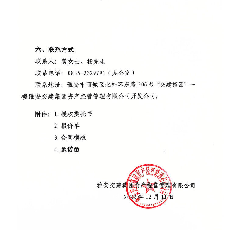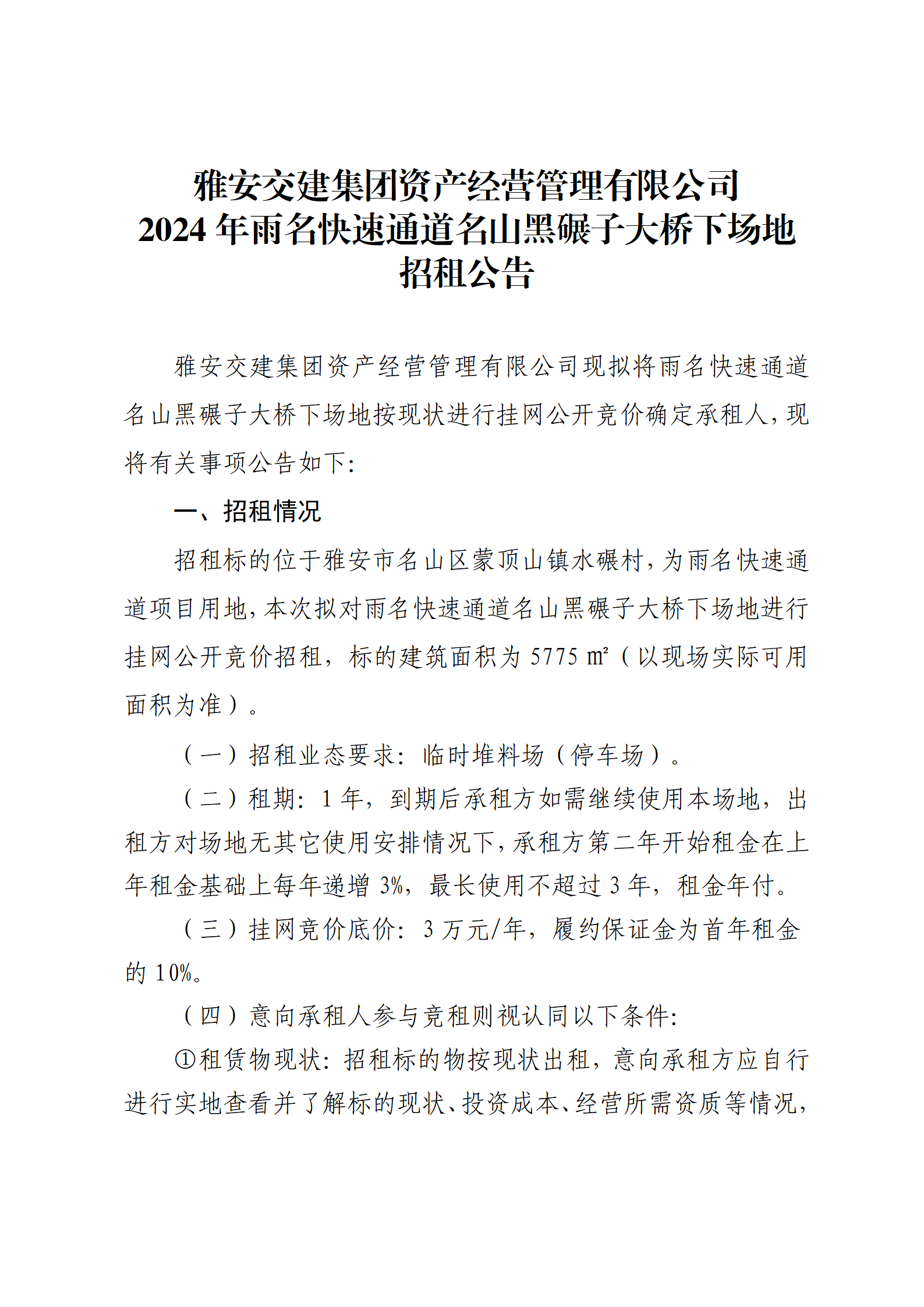 雅安交建集團資產(chǎn)經(jīng)營管理有限公司2024年雨名快速通道名山黑碾子大橋下場地招租公告