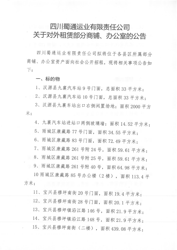 ËÄ´¨Êñͨß\(y¨´n)˜I(y¨¨)ÓÐÏÞØŸ(z¨¦)Èι«Ë¾êP(gu¨¡n)ÓÚŒ¦Íâ×âÙU²¿·ÖéTÃæ¡¢Þk¹«ÊÒÙY®a(ch¨£n)µÄ¹«¸æ¸½¼þ