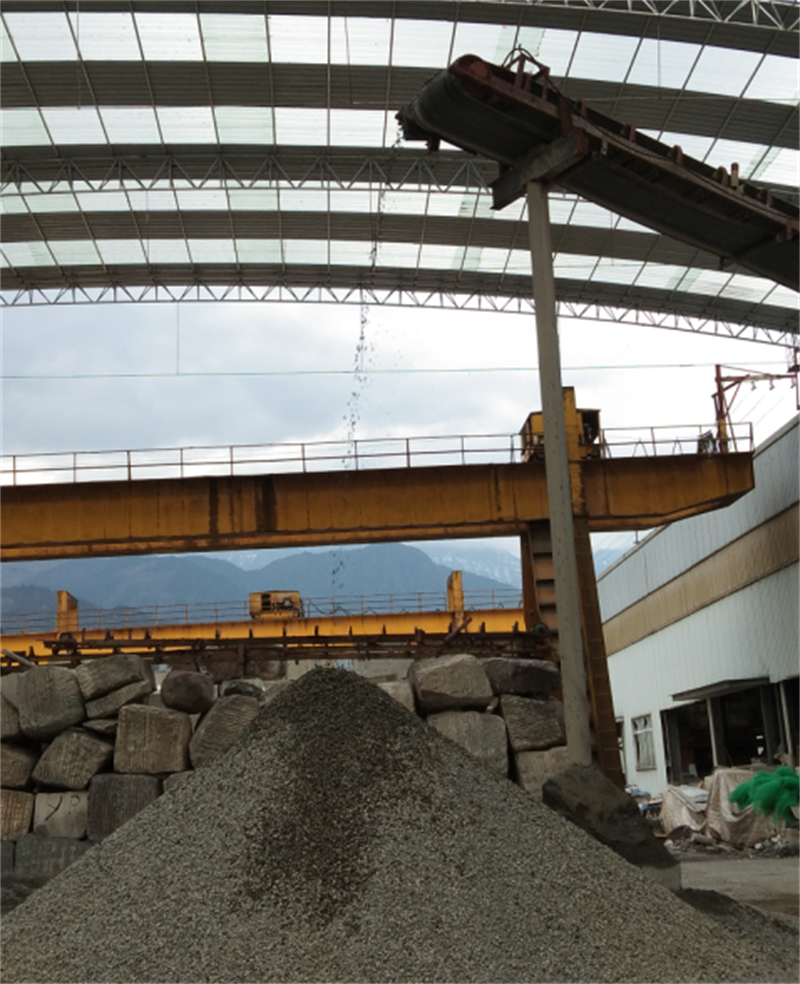 3月14日下午15:00時(shí),第一車施工棄渣從寶興縣靈關(guān)鎮(zhèn)代碑寺施工現(xiàn)場(chǎng)運(yùn)抵興寶投資公司委托加工合作企業(yè)——寶興縣健迅石材廠。棄渣投入料倉后,經(jīng)過顎破、圓錐破、沖擊破三次破碎后,掉落在地面,這標(biāo)志著興寶公司與寶興縣健迅石材廠委托加工合作正式啟動(dòng)。