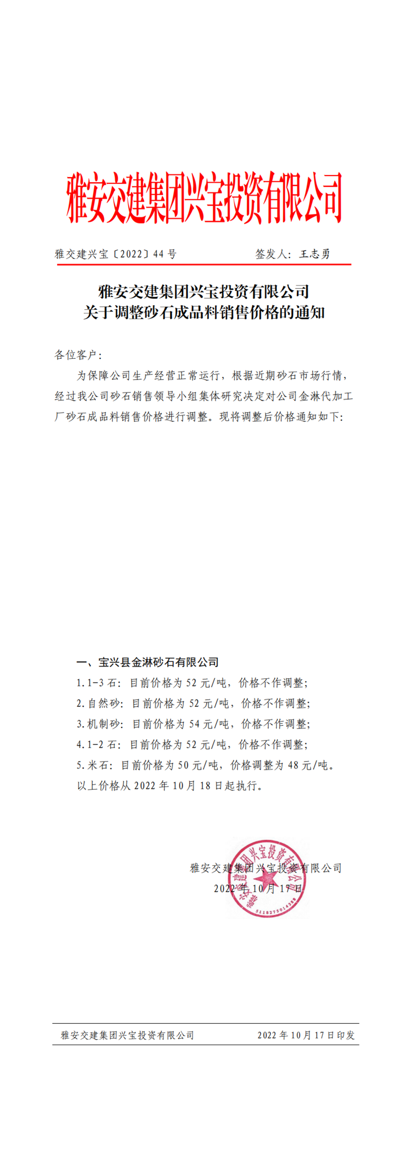 ÑŽ»½¨ÅdŒš¡²2022¡³44Ì–(h¨¤o) êP(gu¨¡n)ÓÚÕ{(di¨¤o)Õûɰʯ³ÉÆ·ÁÏäN(xi¨¡o)ÊÛƒr(ji¨¤)¸ñµÄ֪ͨ10.17
