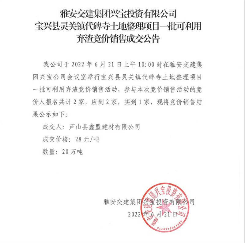 可利用棄渣成交公告